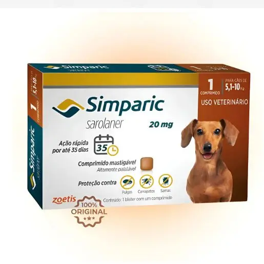 O Simparic 20mg antipulgas e carrapatos para cães é um antiparasitário eficaz no combate a pulgas, carrapatos e ácaros, proporcionando alívio rápido da coceira e proteção contínua por até 35 dias. Sua fórmula de ação rápida ajuda a eliminar os parasitas antes que causem desconforto ou transmitam doenças. Além disso, o Simparic contribui para a prevenção de infestações e auxilia no controle de problemas de pele causados por parasitas. Em formato mastigável e altamente palatável, é fácil de administrar e ideal para manter seu cão protegido, saudável e livre de incômodos no dia a dia.