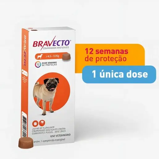 O Bravecto antipulgas e carrapatos para cães é um dos antiparasitários mais eficazes para o controle de pulgas e carrapatos em cães, oferecendo proteção prolongada com uma única dose. Sua ação rápida elimina os parasitas em poucas horas e ajuda a prevenir novas infestações por até 12 semanas, garantindo mais tranquilidade para o tutor e bem-estar para o pet. Além de combater pulgas e carrapatos, o Bravecto também auxilia na prevenção de doenças transmitidas por esses parasitas, protegendo a saúde do animal de forma completa. Disponível em versões mastigáveis de fácil administração, é altamente palatável e ideal para incluir na rotina de cuidados, mantendo seu cão protegido, confortável e livre de infestações por muito mais tempo.