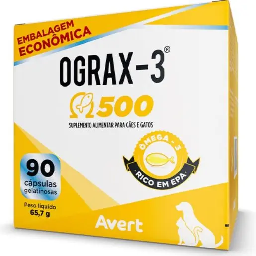 Ograx 500mg Omega 3 para Cães e Gatos tem composição Rica em Ácidos Graxos Essenciais: Formulado com EPA e DHA derivados de óleo de peixe refinado, contribuindo para a saúde geral do seu pet. Benefícios para Pele e Pelagem: Auxilia na manutenção de uma pele saudável e pelagem brilhante, proporcionando melhor aparência ao animal. Saúde Articular e Mobilidade: Contribui para a saúde das articulações, promovendo maior mobilidade e conforto para cães e gatos. Propriedades Anti-inflamatórias e Antioxidantes: Auxilia no controle da dor, minimiza reações inflamatórias crônicas e ajuda a retardar o envelhecimento celular. Modo de Uso Prático: Administrar 1 cápsula para cada 9 kg de peso corporal por dia, podendo ser oferecida inteira ou misturada ao alimento